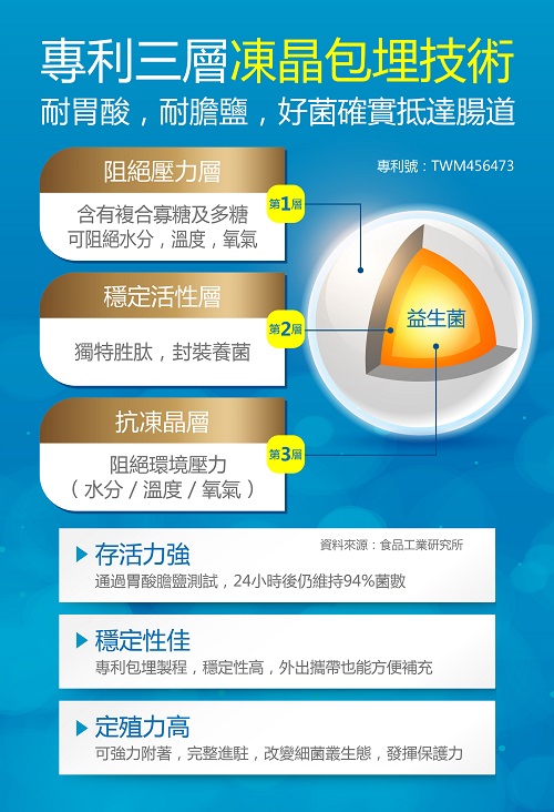 由於腸道是人體最大的免疫器官,腸道好菌多,自然能讓人體遠離疾病。然而益生菌在到達大、小腸道前會經過胃酸、膽鹽等層層考驗,唯有成功到達腸道的「活菌」才能在腸道繁殖,如果好菌吃下去都死光光,就只是吃下一堆澱粉而已。營養師廖欣儀舉例,就像副乾酪乳桿菌是有專利的菌株,搭配果寡糖,等於把精銳部隊和豐富的糧草送進腸道,進一步長駐、壯大,只要菌株夠強,比很多沒有戰力的雜牌軍更給力。