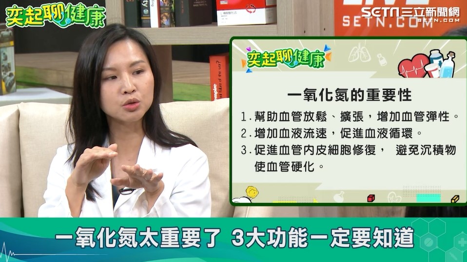 廖欣儀營養師則強調,一氧化氮由L精胺酸合成,對人體有3大重要性。