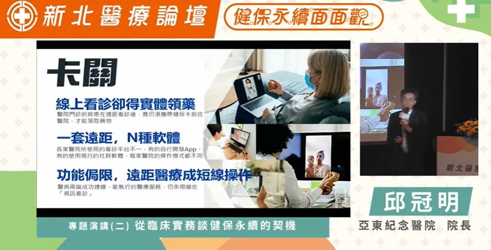 針對遠端醫療議題,亞東醫院院長邱冠明指出,COVID-19這場疫情帶給台灣最大的影響,是醫界做好了「滯洪池」,也就是架構好了居家照顧和call center的概念,並安頓超過四百萬名的確診者,讓疫情不至於打擊醫療體系。