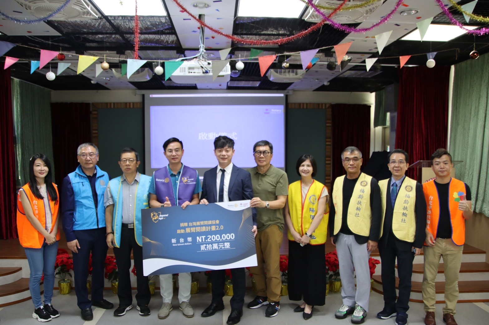 9/8日於石碇永定國小舉辦聯合社服啟動儀式,台北躍齡扶輪社結合台北陽明扶輪社、台北百齡扶輪社、台北福齡扶輪社、台北陽星扶輪社、台北華齡扶輪社,共同響應展臂閱讀2.0計畫,捐贈適齡繪本、支持培訓及說話計步器系統,預計全台超過32個社區合作據點受益,將親子共讀融入台灣兒童照護之中,扭轉逐漸加大的台灣M型化閱讀力。