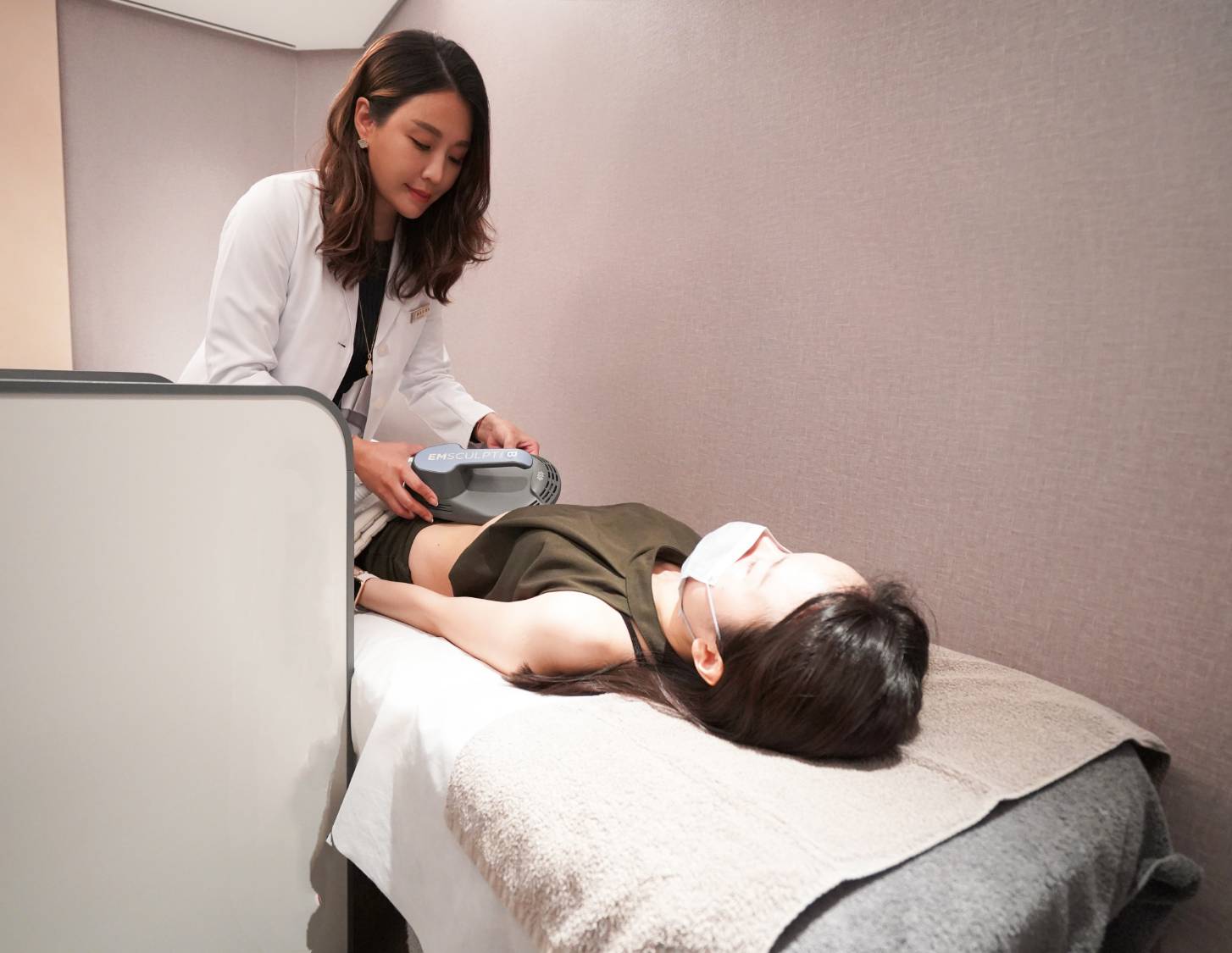 蔡佳芬醫師表示,有了EMSCULPT NEO之後,除了減脂還能帶動肌肉,強化緊實曲線,完整了體雕的最後一塊拼圖,「因為發現效果很驚人,我們現在都採合併式體雕療程,首先用NEO在大區塊脂肪囤積部位做溶脂合併肌肉訓練,死角的地方再用冷凍去雕塑,身材好除了脂肪要少還要有線條感、緊實感,瘦得很乾癟已經不符合主流。」