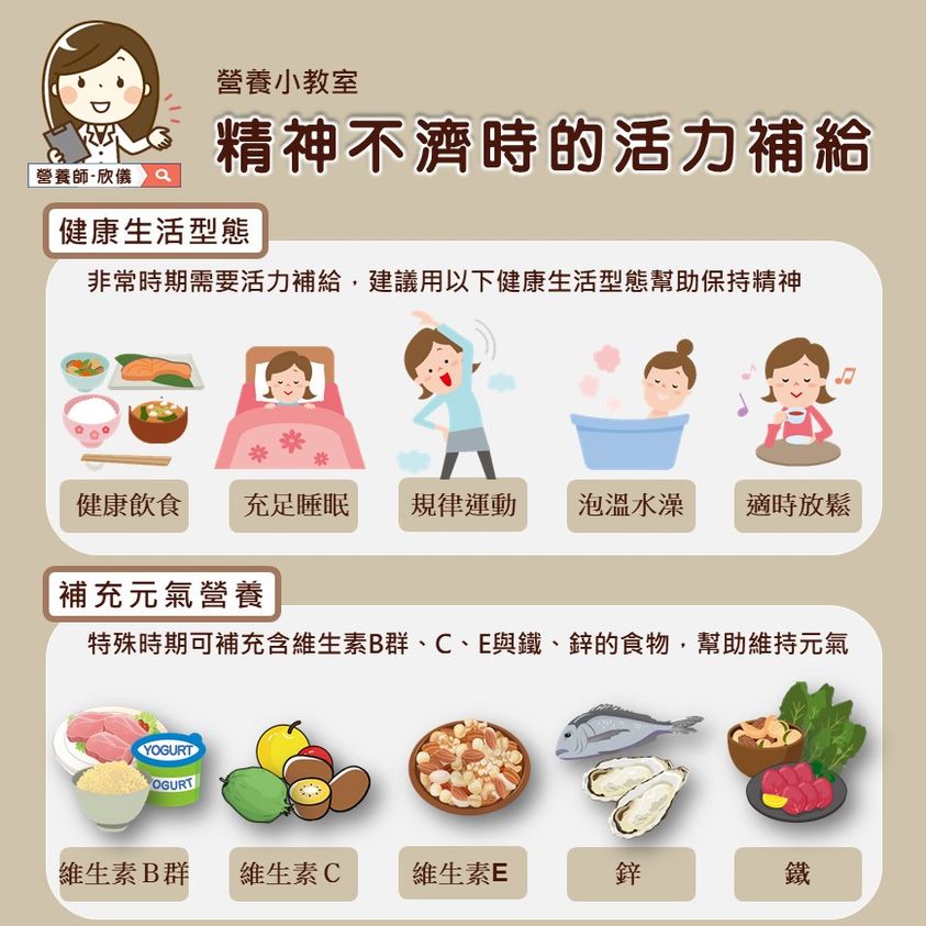 氣象局表示,週三(5日)東北季風增強,北部及東北部高溫下降較為明顯,白天溫度降幅約10度。由於最近換季,日夜溫差劇烈,很多人開始出現疲乏現象,若再加上工作壓力大、睡眠不良或飲食不均衡,疲倦、精神不濟的情形將越發嚴重。資深營養師廖欣儀建議,可以多補充以下營養素: