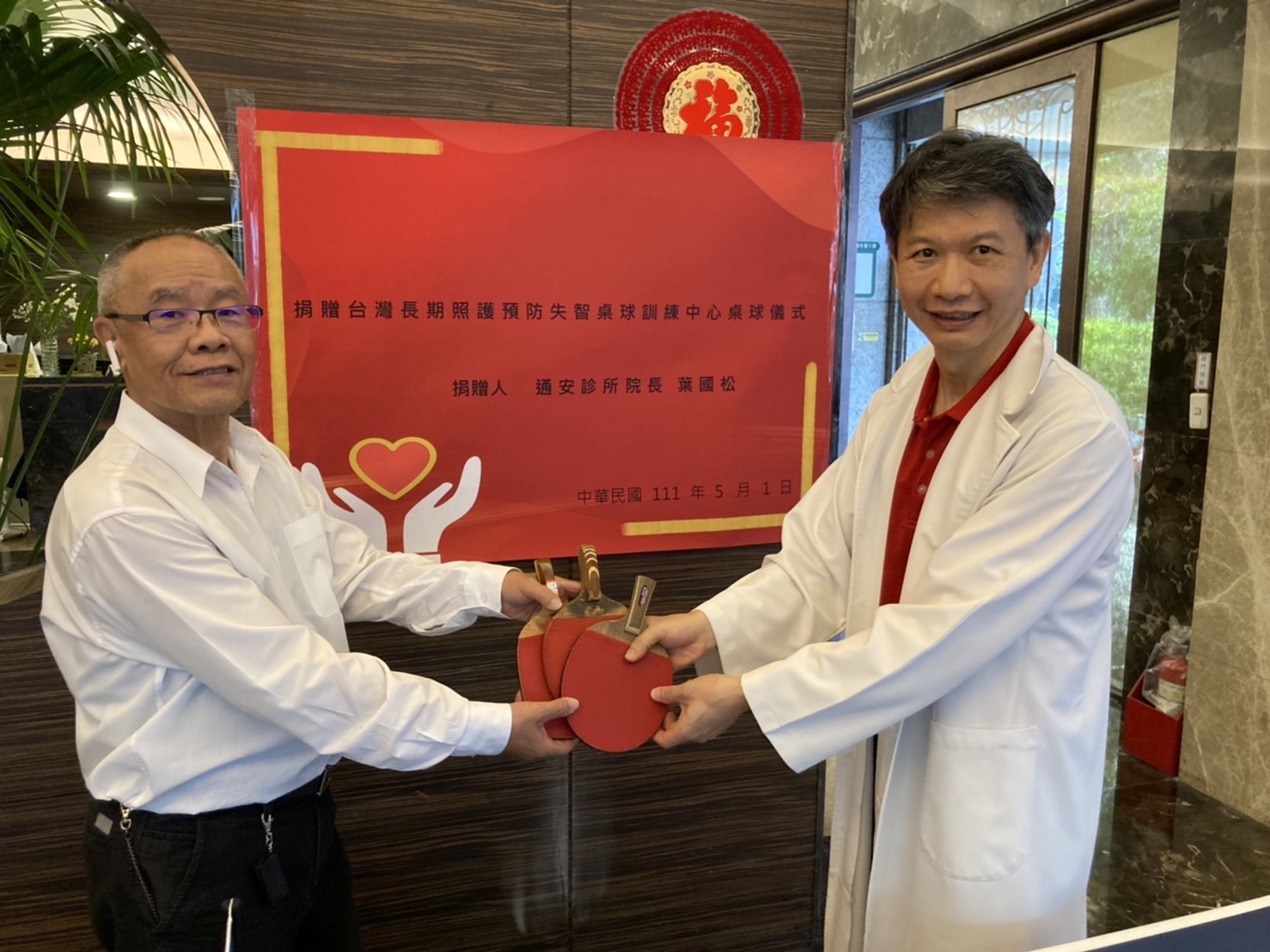▲練桌球可預防失智,熱心公益的葉國松醫師(右)成立社區桌球訓練中心。(圖/葉國松醫師提供)