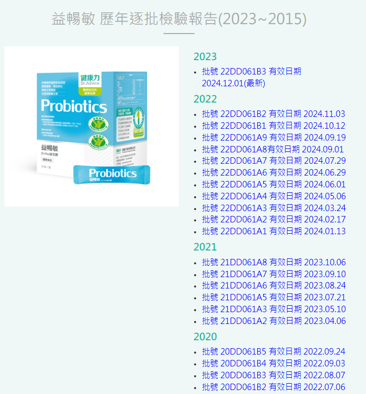 2.是否有逐批檢驗:逐批檢驗亦即每一批次生產都送驗,這作法是將把關放在前頭,確認每一批驗完沒問題才進入市面銷售,仿間常見業者僅針對首批生產送檢就宣稱產品都沒有問題,但實際上每一批次的原料產製過程以及製造流程都可能汙染,前一批次檢驗通過不代表後一批次就一定無虞,逐批檢驗是對購買不同批次的消費者最大的食安保障,目前台灣僅有少數品牌可以做到逐批檢驗,甚至有品牌一個產品一年可以做到超過10次以上的逐批檢驗,所付出的成本相對同業高出許多,但對消費者來說,是比較安心的作法。