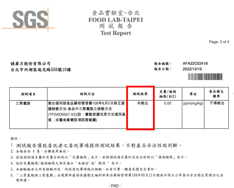 3.檢驗項目是否完整:保健食品常見的檢驗項目包含塑化劑、微生物、重金屬、農藥、三聚氰胺等,其中塑化劑、微生物是多數產品都需要檢驗的項目,如果產品中含有植物成分,則需要檢驗重金屬跟農藥,若產品含有奶粉成分則最好要檢驗三聚氰胺;有些廠商只檢驗其中一項就大肆宣傳有做檢驗,但多數的消費者並不會辨別。所以要檢驗到「對的項目」,對消費者才是有保障的。