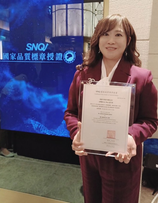 SNQ國家品質標章向來有台灣生技產業「奧斯卡」最高榮譽的稱號,由國家生技醫療產業策進會召集全國權威學者專家,經過嚴謹科學驗證的標章,代表安全與品質,追求健康生命與高品質生活目標,也是高品質的象徵。