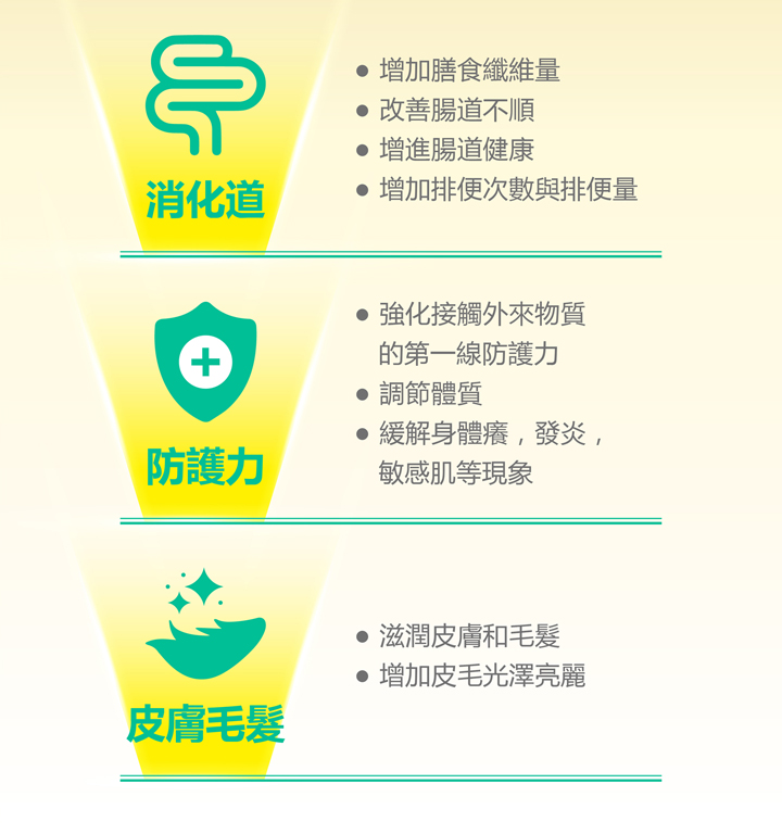 腸胃保健、幫助消化、增強防護力、毛髮保健幫助皮膚健康、每包添加60億活菌(益生菌+益生元)產品容量