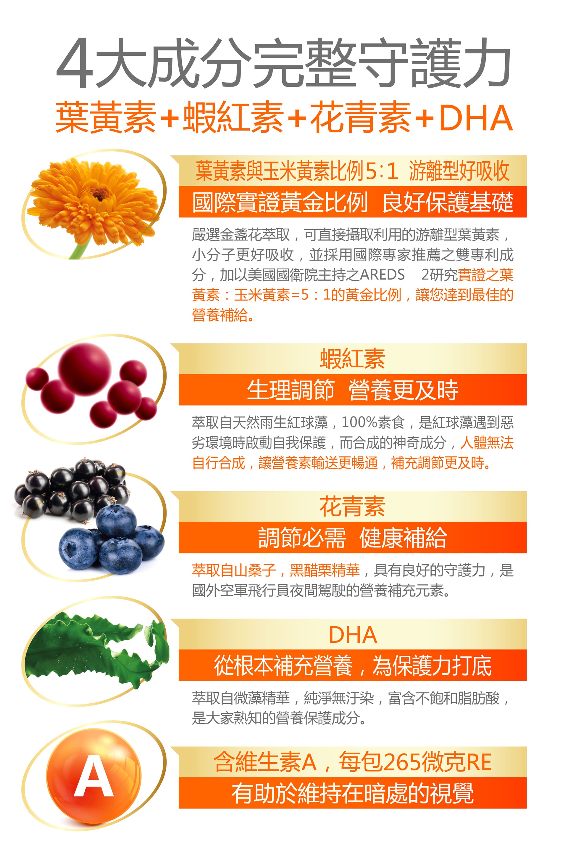 特別添加珍貴蝦紅素,富含維生素A,有助維持暗處視覺產品容量