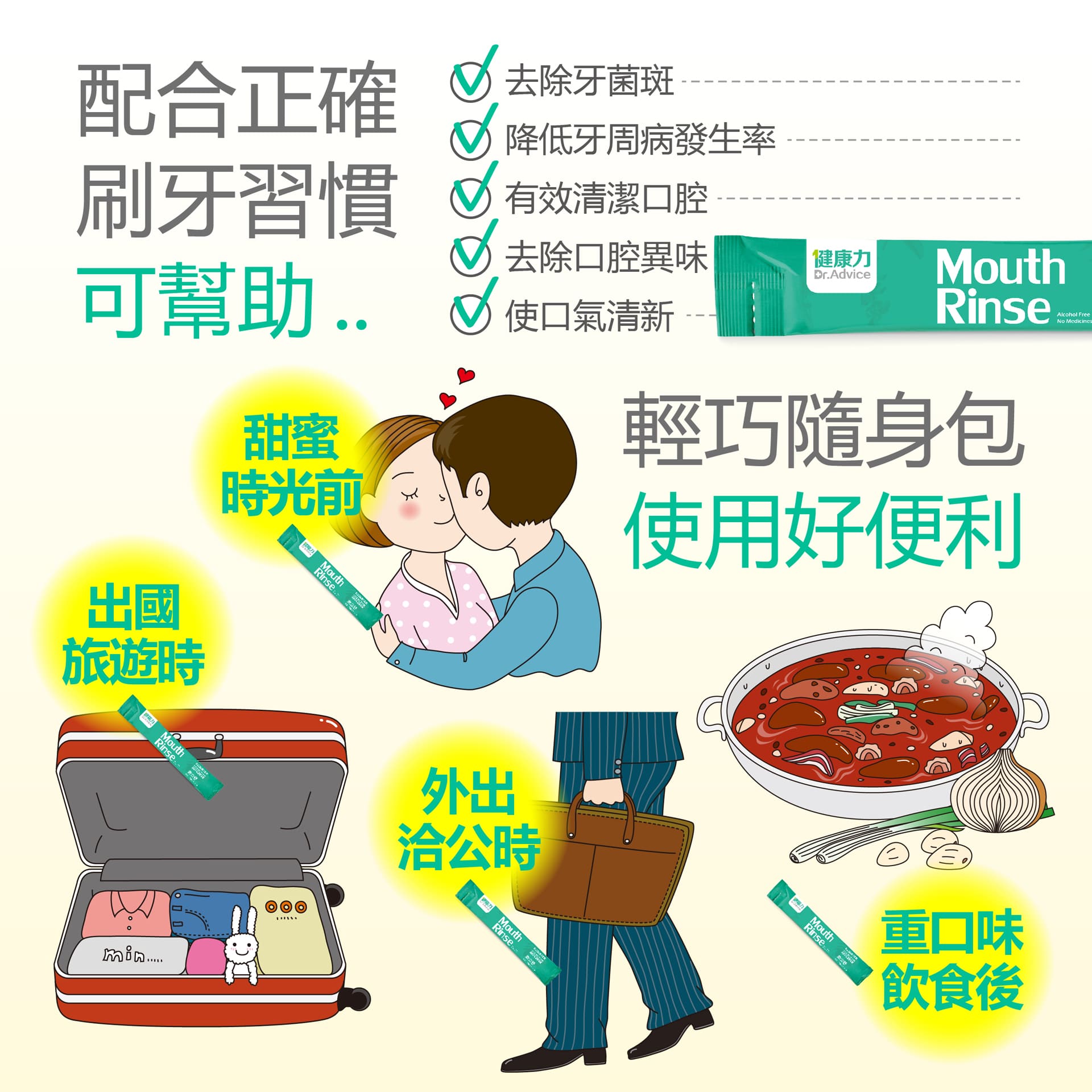 漱立舒可淨化口腔、去除口腔異味,配合正確刷牙習慣,可控制牙菌斑及預防牙周病,輕鬆養成口腔保健好習慣!