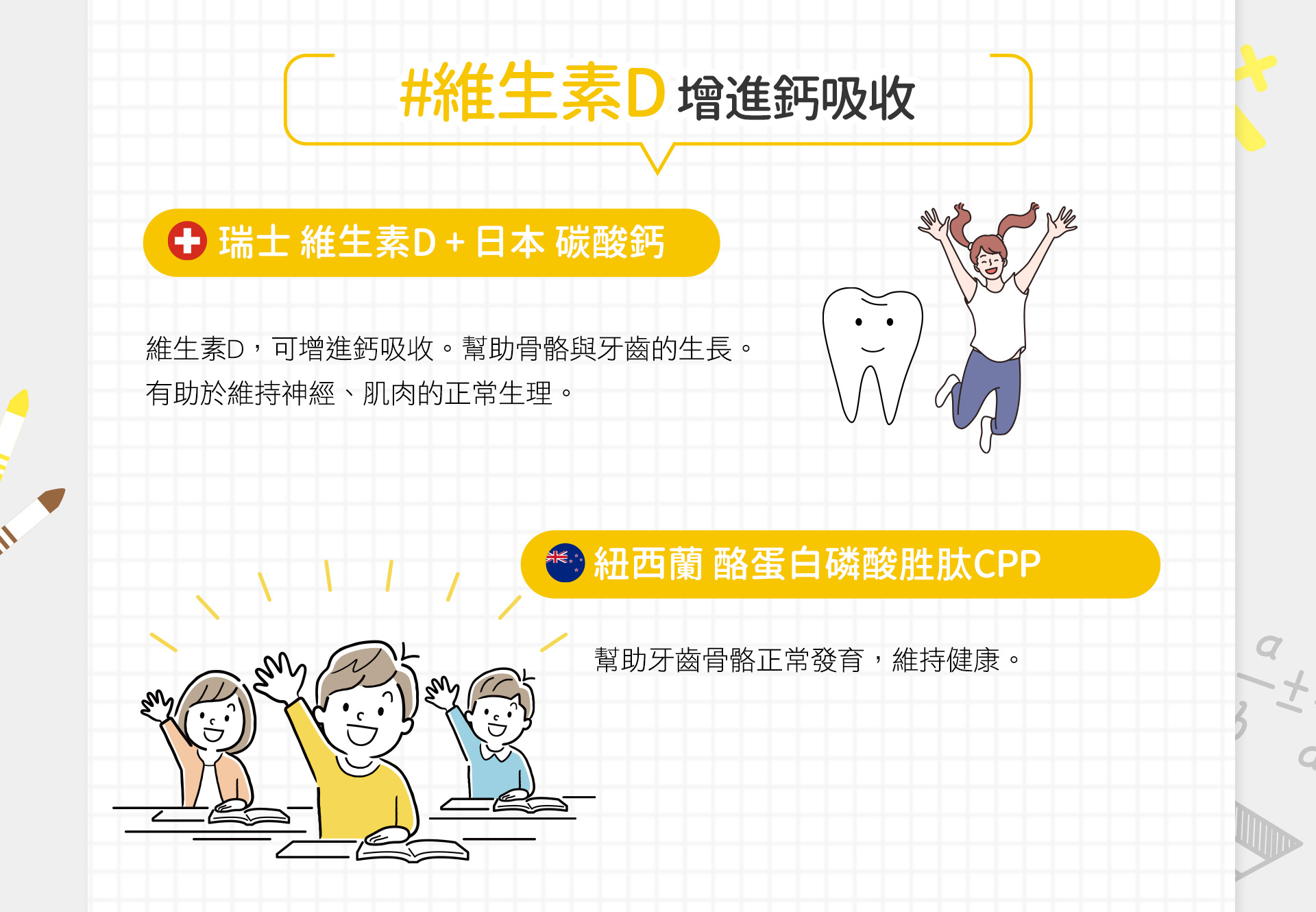 奠定學習力,幫助生長力,營養大補給,維生素D增進鈣吸收、幫助骨骼與牙齒的生長發育。產品容量