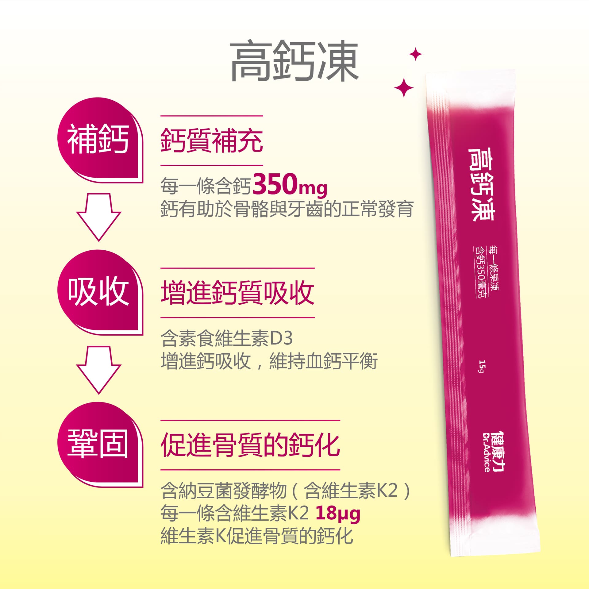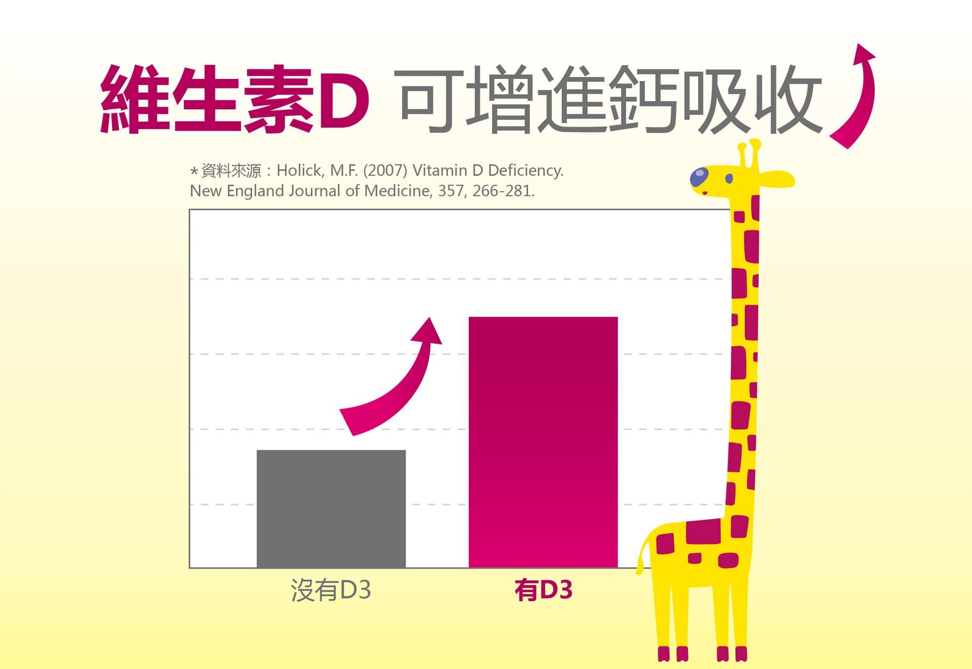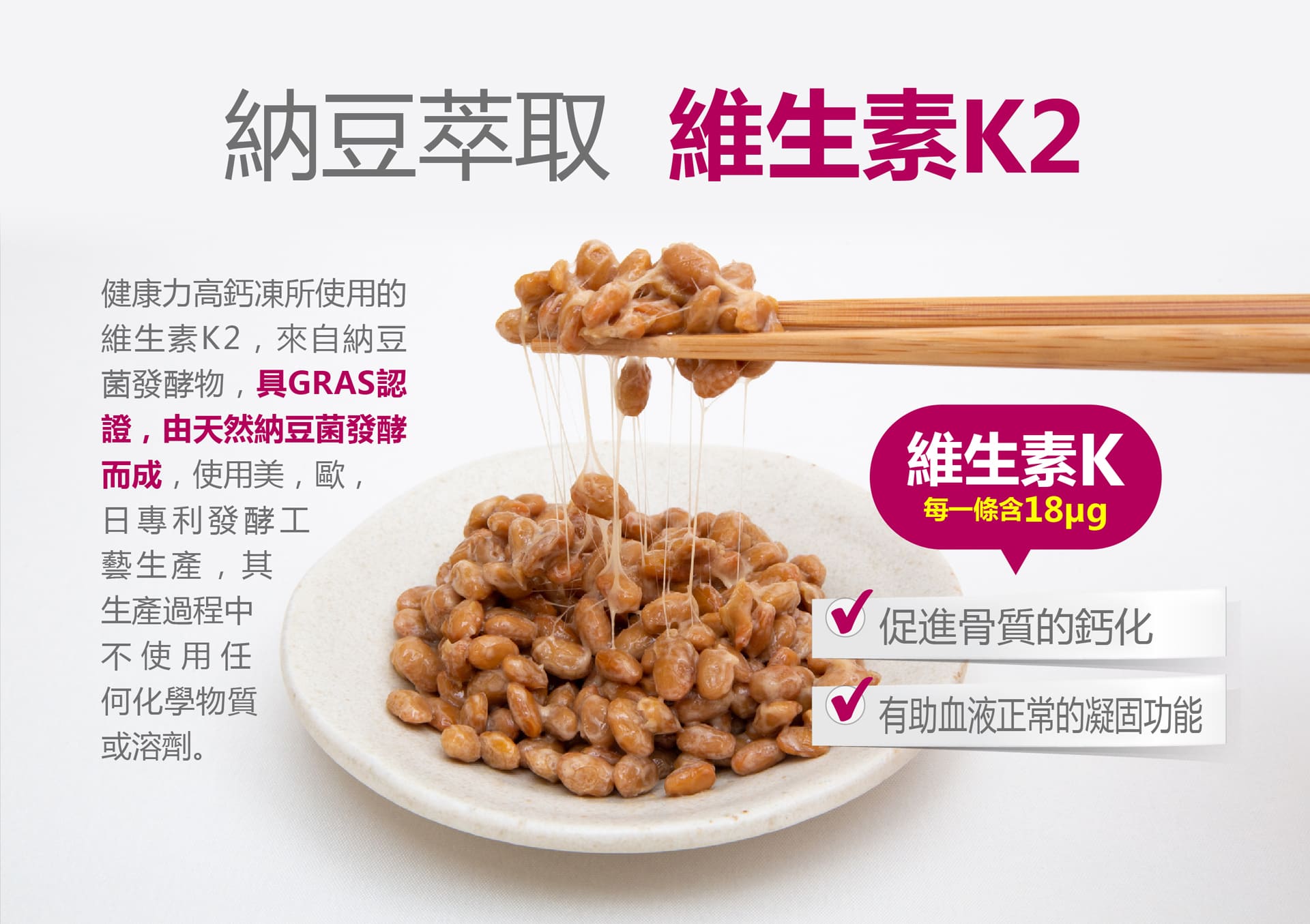 鈣有助於維持骨骼與牙齒的正常發育及健康,維生素D增進鈣吸收、有助於維持神經、肌肉的正常生理,維生素K促進骨質的鈣化製程
